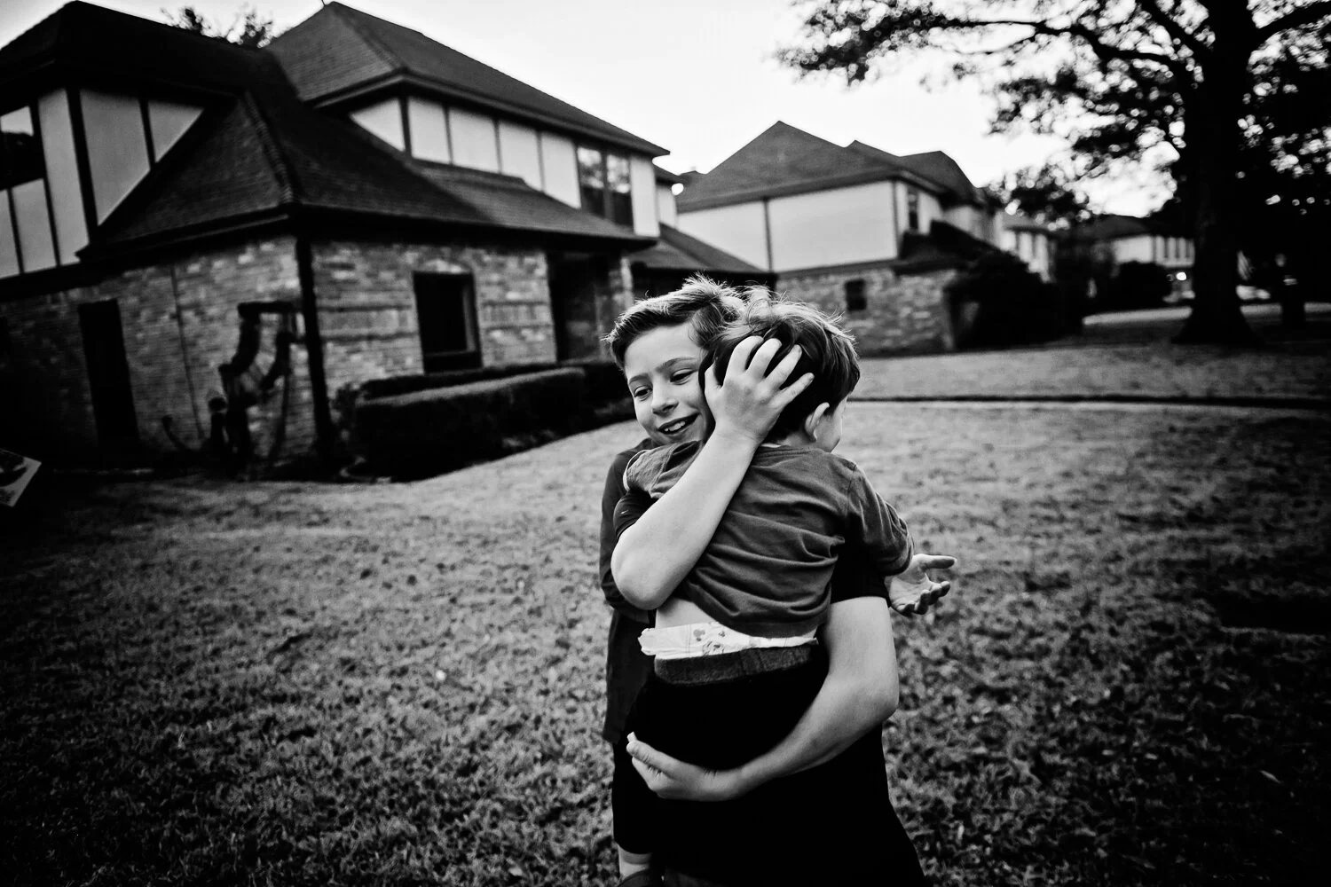 Here's one of the first days. I love how the black and white look. I love my boys and I love capturing their interactions. Christmas break was a crazy one with lots of back and forth to their dads and here, lots of work for me, lots of buildings and projects but no sickness thank goodness. Luke loves to go outside so the boys were playing with him and it was dusk and the light was so yummy so I ran to get my camera.